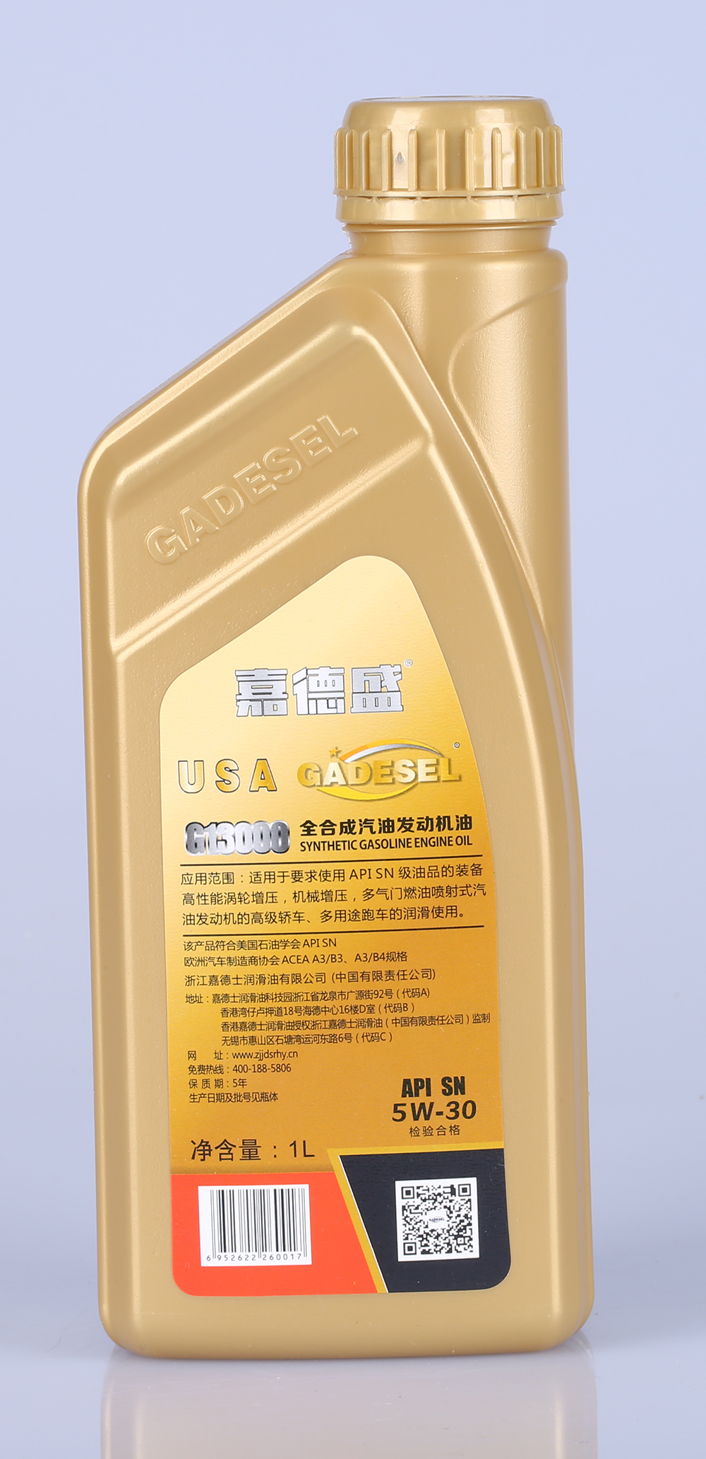 “嘉德盛”合成汽油發動機機油選用新型全合成基礎油和最新的復合添加劑精心調制。滿足汽車制造商要求的粘度,其出色的品質超出了眾多著名制造商的要求。提供超級強勁的發動機保護清潔功能。
